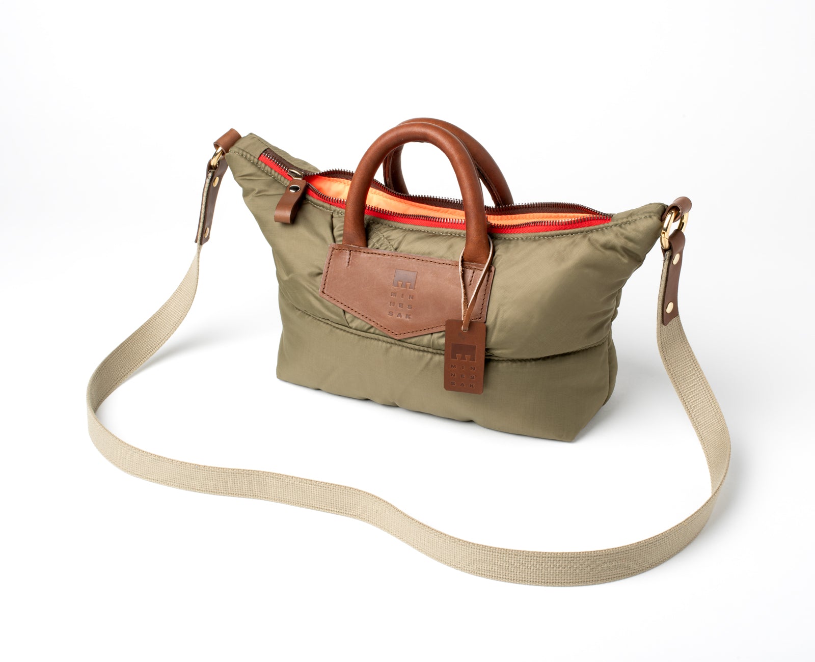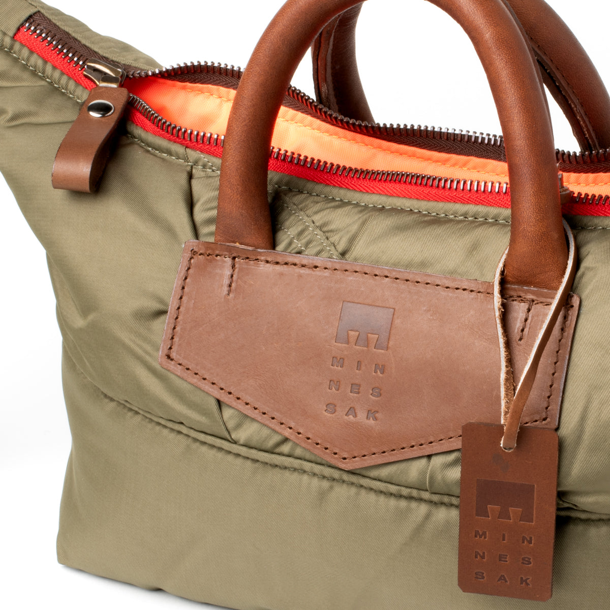 Hand-cut from repurposed Alpha Industries flight jackets and finished with vintage Italian leather panels and grip handles, it balances military utility with modern style. Switch between cross-body, shoulder, or handheld with its crafty mix of detachable canvas and leather straps, giving you multiple ways to wear it. Lightweight, durable, and beautifully tactile, this is a bag designed to be used daily, admired often, and cherished for years to come.