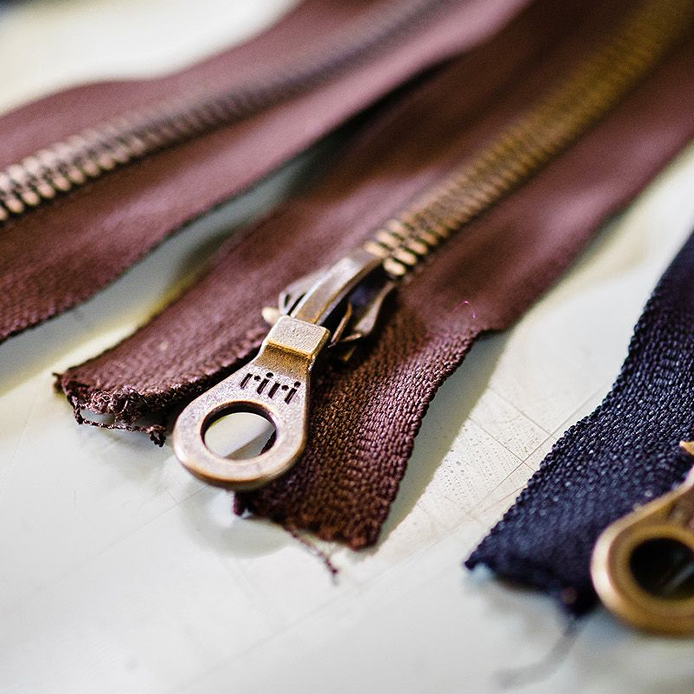 Every Riri we use is taken from deadstock, giving new life to these precision-engineered components while ensuring smooth action and decades of reliability.