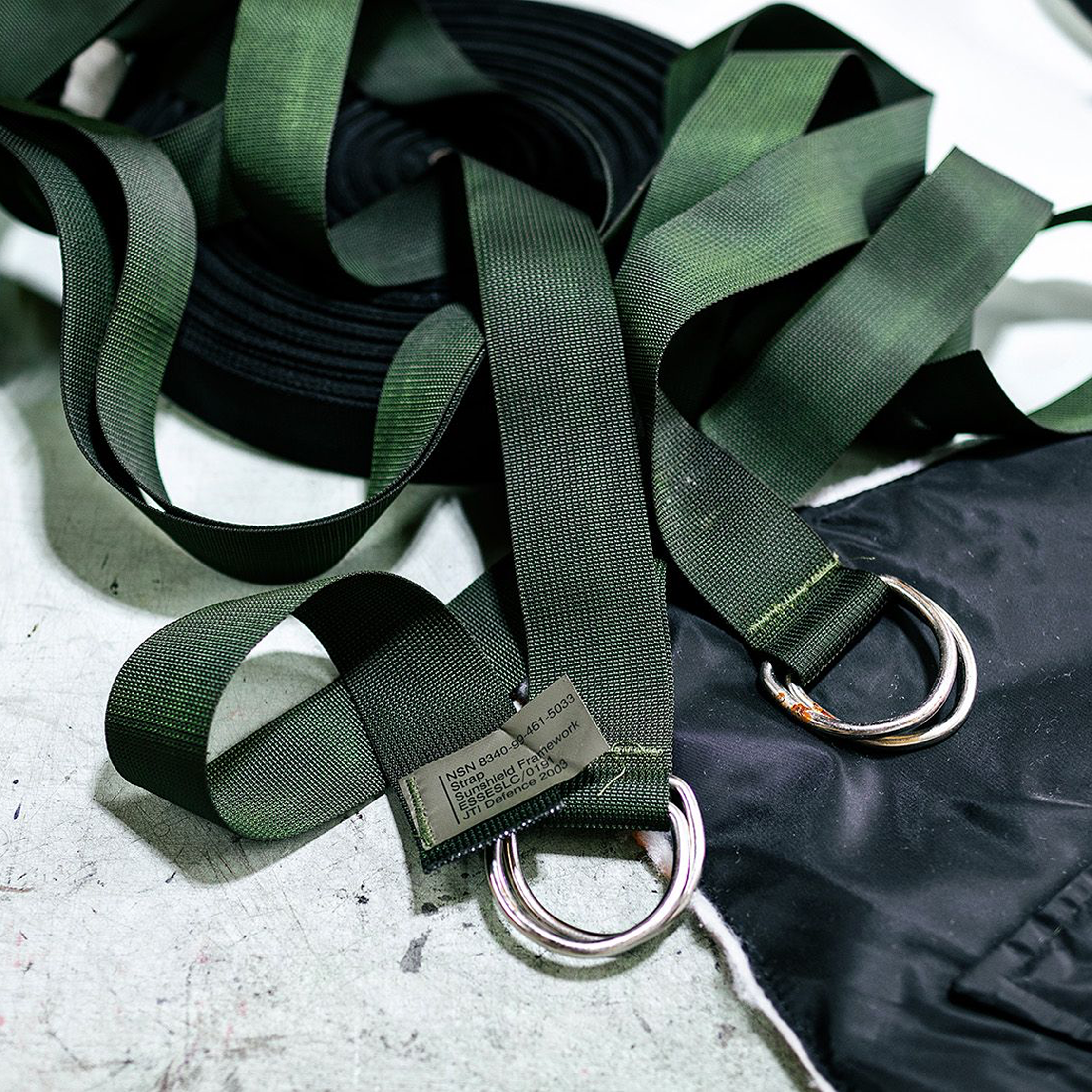 The strength of a bag often lies in its details. Our straps are cut from recycled canvas and deadstock webbing – some even salvaged from 300 foot-long straps often found on U.S. military Humvee vehicles! Our hardware like buckles, sliders, and adjusters are sourced from surplus brass and nickel-plated stock, chosen for their strong aesthetic, solid construction and endurance.